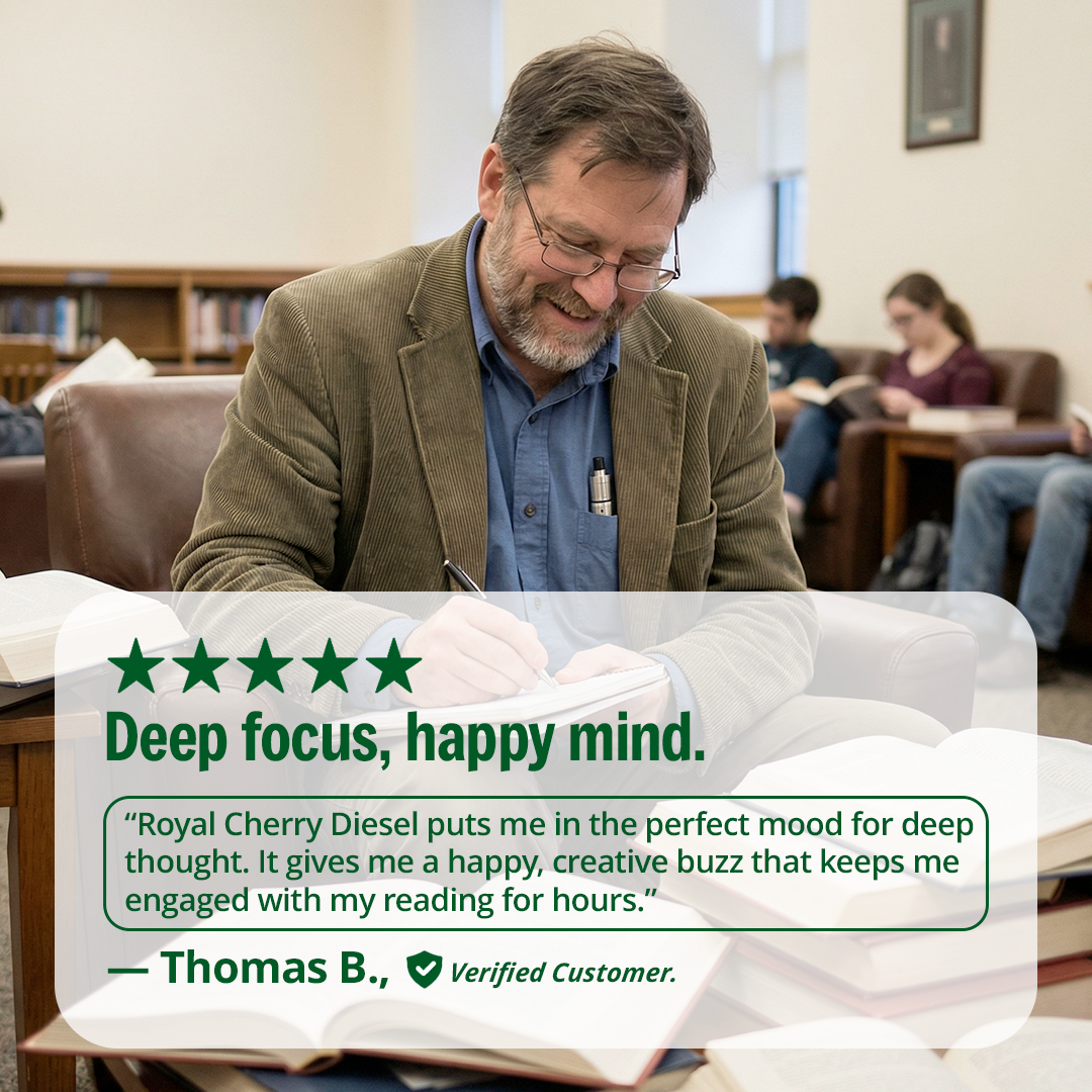 Royal Cherry Diesel is your go-to. It delivers mental clarity and vigor, empowering you to tackle even the most daunting tasks on your agenda. While your mind stays focused and motivated, your body enjoys gentle relaxation without the heaviness of couch-lock.Β